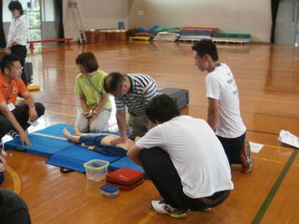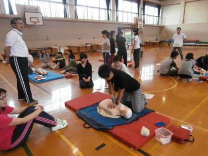 8日月曜日の3:00より,教職員は,明親小学校で「普通救命講習」を受けました。