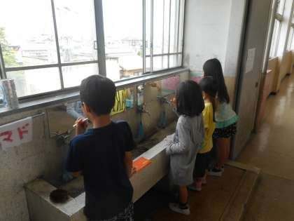 給食後は,学んだことを活かして歯磨きをしました!「先生!!ピカピカになったよ!」と教えてくれました。