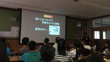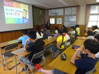 今日は日曜参観で,KDDIの方に来ていただき,ケータイ電話(インターネット)を使う上で,気をつけるべきことを教えて頂きました。