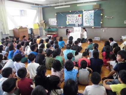 今日は七夕です☆あいにくのお天気ですが,今日は図書ボランティアの方々が3・4年生を対象に中間休みに読み聞かせをしてくださいました。