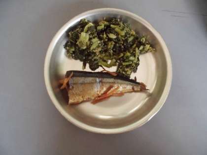 さんまのかわり煮 だいこん葉のごまいため とうがんのくずひき ごはん 牛乳