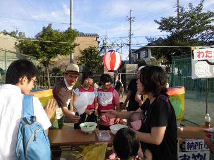 今年は,おやじの会のわたがし屋に 6年生の有志の子どもたちのボランティアも加わって,看板作りから関わり,お客さんの呼び込みや代金の係りなど お手伝いを頑張りました。いつもより たくさんのわたがしが売れ,大忙しだったようです。