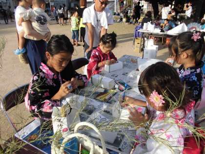 灯篭づくりのコーナーでは,真剣に制作する子どもたちの姿が見られました。