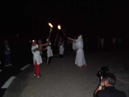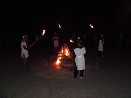 火の精たちからいただいた「努力」「勇気」「友情」「希望」の火が高く燃え上がり,キャンプファイヤーが厳かに始まりました。2日目を締めくくる 楽しい思い出となりました。