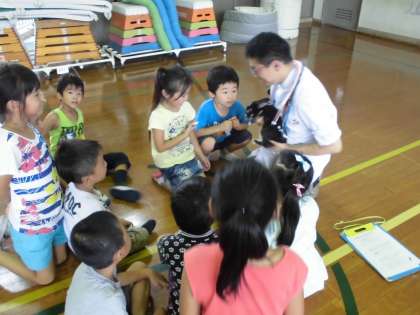学校に獣医さんが来て下さいました。うさぎの抱き方や疑問に思っていることなど,うさぎについてたくさん教えていただきました。聴診器を使って,人とうさぎ両方の心臓の音を聴かせてもらいました。人に比べて,心臓の音がとても速かったので,「すごい」と言っていました。またうさぎについて,たくさん知っていきたいですね。