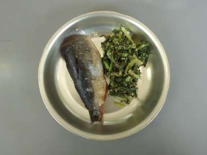 にしんの煮つけ だいこん葉のごまいため かぼちゃのみそ汁 胚芽米ごはん 牛乳