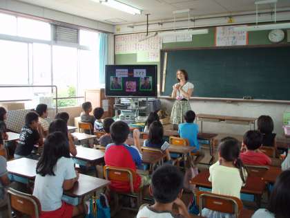 ALTのチェルシー先生に,英語を使った自己紹介の仕方を教えて頂きました。