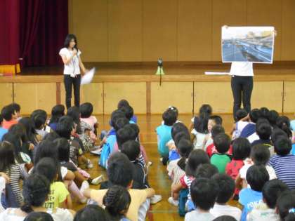 避難訓練がありました。昼休みの時間ともあり,いつもの訓練とは違った環境で行いました。少し時間がかかってしまったものの,そろって全員体育館に集まることができました。体育館では,実際に起こった地震のことや,「お・は・し・も・て」の話を聞き,子どもたちも真剣に話を聞いていました。