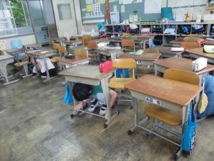 「今週のどこかで避難訓練がある」としか知らされていない子どもたちでしたが,みんな素早く避難することができていました。