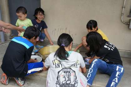 衣服の手入れの仕方の一つ,手洗いによる洗たくの方法を実践しました。