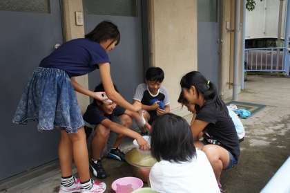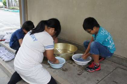 家庭科 手洗いで靴下をきれいにしよう