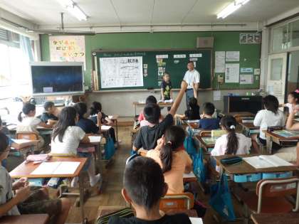 1組の算数では奇数と偶数の学習、2組の社会では身のまわりの食料について学習しました。