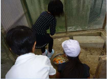 うさぎの大好きな餌やどんな世話をしないといけないのかについて,クラスの中で話し合いました。そして実際にうさぎのために,餌や水をかえたり,うさぎ小屋の掃除をしたりしています。うさぎのために自分たちはどんなことができるのかについて考え,毎日うさぎの世話を一生懸命頑張っています。