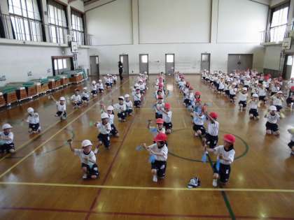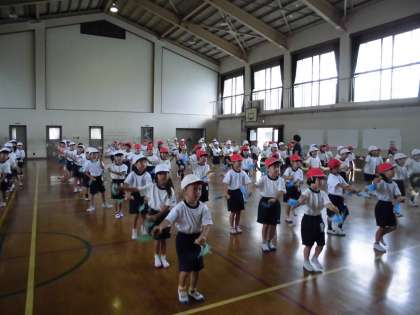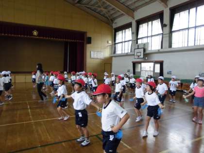 1・2年生合同で,ちゃーびらさいの練習をしています。音がしっかり揃うように,1人1人が曲を聞いたり,カウントを数えたりして,頑張っています。運動会まで,毎日練習がありますが,手の挙げ方や目線など,細かい所にも気を付けて取り組んでいきたいと思います。