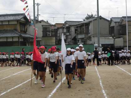 昨日に予定していた1回目の全校練習は,本日の3・4時間目に延期になっていました。ようやく 雨も上がり,曇り空の下で 熱中症の心配をすることもなく「行進」「全校ダンス」「綱引き」と順調に全校練習を行うことができました。