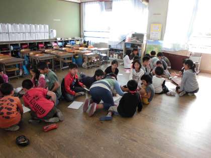 3校時に全校の縦割り活動の「なかよし活動」を行いました。今日は「すごろく」をしました。6年生が各グループでの活動を上手に進め,みんな楽しく過ごしました。