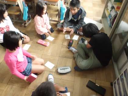 すごろく盤からサイコロまですべて六年生の手作りで、グループごとにまったく盤のデザインが違います。コースはカラフルでくねったり落とし穴があったりとワクワクさせる工夫がたくさんあり、1〜5年生は夢中でゴールを目指していました。