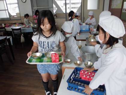 学習の後は、ランチルームでの給食でした。