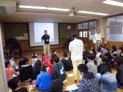京都水族館から6年生の環境学習のため本校に来ていただきました。「いもり」や「大きながまがえる」の実物やオオサンショウウオの大きな模型を持ってきてくださって,オオサンショウウオの話から環境について考える授業でした。授業の後は,他学年も「がまがえる」に直接触らせていただけたので,みんな大興奮でした。