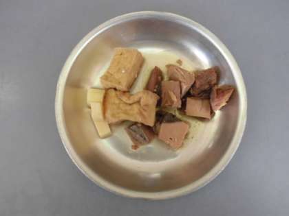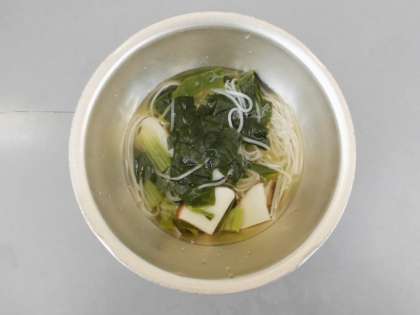 なま節と厚あげの煮つけ すまし汁 柿 胚芽米ごはん 牛乳