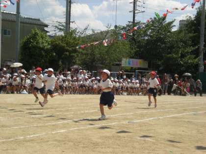 徒競走は50M。今までに走ったことのない距離で,けん命に走りました。なんと転倒した子はなし。みんな全力を出しきりました。