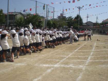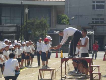 全校でのつな引きや応援合戦,台風の目など初めての経験が多かったと思います。それからほんとに暑かったね〜。みんな帰りはさすがに疲れていました。よくがんばりました!