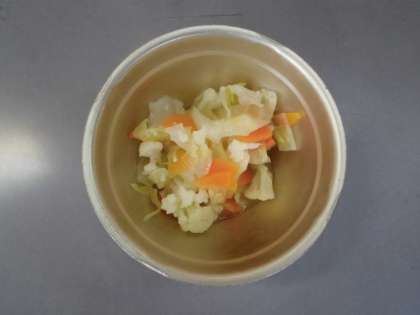 ポークビーンズ カリフラワーのホットマリネ チーズ ミルクコッペパン 牛乳