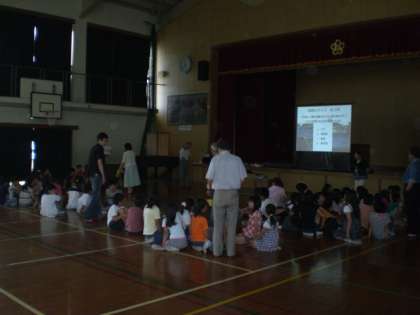 このまま温暖化が進むと、100年後には6度近くも気温が上がる可能性があるそうです。子どもたちも「え〜。」とおどろきの声が。むずかしいクイズも頭をひねりながら考えていました。