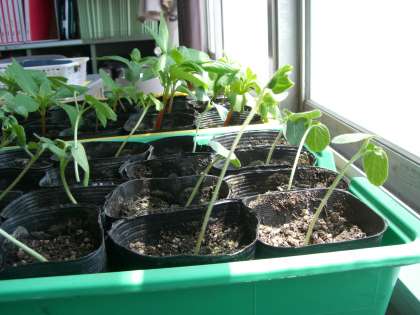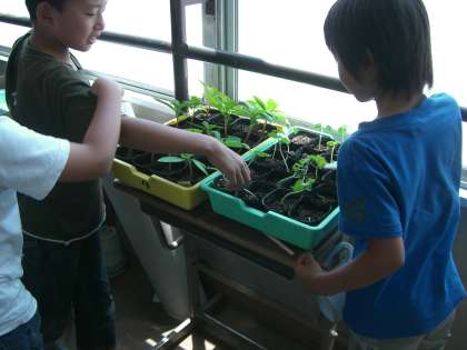理科でそだてているホウセンカとオクラが、ぐんぐんそだっていきます。