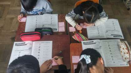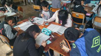 冬休みに行ったワークブックをもとに,できたこと・できなかったことを付箋に書いてグループで振り返りました。