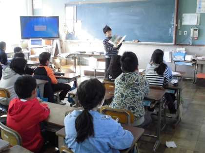 朝読書の時間に,図書委員会の人に読み聞かせをしてもらいました。