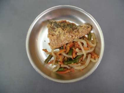 さばのたつたあげ 野菜のきんぴら みそ汁 ごはん 牛乳