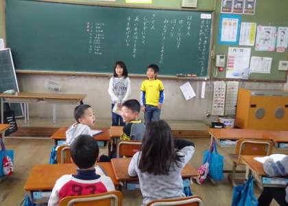 国語の時間に「これは何でしょう」クイズをしました。自分たちでヒントを考えて,問題作りをしました。一つ一つのヒントに対して,答えが何なのか一生懸命考えていました。クイズを出す時には,ていねいな言葉で,相手に伝えるように話すように心掛けました。今回の授業以外でも,こんな話し方を意識できるといいですね。