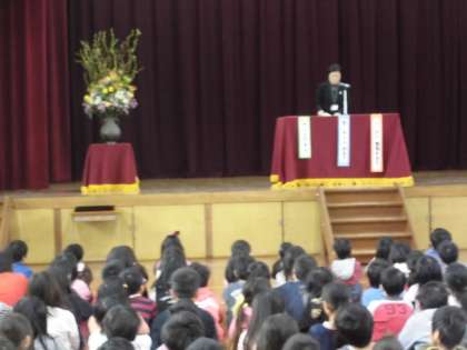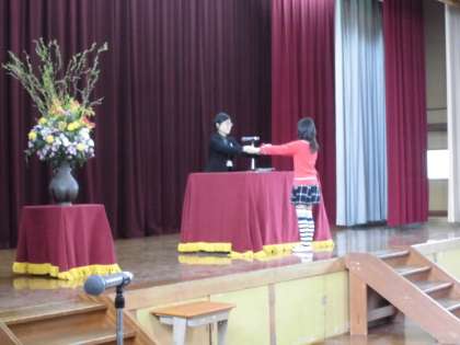 今日は27年度の修了式です。昨日,6年生が卒業しましたので,1〜5年生が並ぶと少し広く感じてしまいます。5年生の代表が校長先生から修了証をいただきました。他のみんなは各教室で担任から渡されます。保護者の皆様,地域の皆様,1年間ありがとうございました。