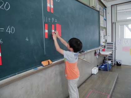 数え棒を使ってどのようにしたら計算できるか考えました。