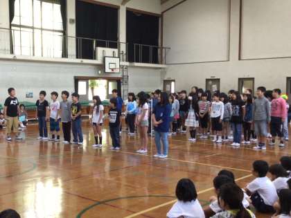 これまでセリフや振り付けを個人やグループで考えてきました。全校児童が見ている前で,発表するのはとても緊張したと思います。