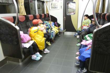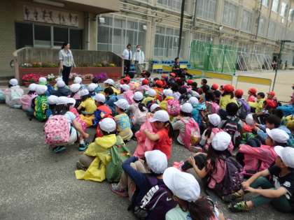 楽しい時間はあっと言う間に過ぎ,無事に学校に帰ってきました。曇りがちの天気のおかげで暑くなりすぎず,遊具遊びの時に霧雨が降っただけで,天候に恵まれました。1年生にとっては,初めての遠足でした。すてきな思い出ができました。
