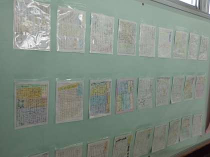 修学旅行の思い出をハガキ新聞にしてまとめました。それぞれの学びや感想がよく書けています。