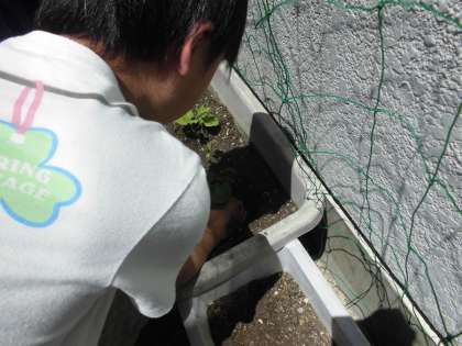 理科の授業で,ゴーヤを植えました。水遣りや雑草抜きをしたりして,大切に育てていきましょう。どこまでつるが伸びるのか楽しみですね。