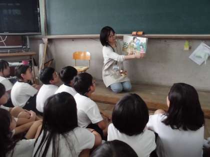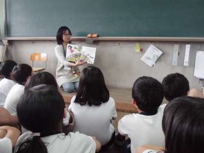 1・2の算国の時間に,向井先生に読み聞かせをしてもらいました。「くさる」「メチャクサ」というお話を読んでもらいました。子どもたちはとても楽しそうに,話を聞いていました。また「くさる」はごみに関するお話だったので,これを機会に環境についても考えてみてほしいです。