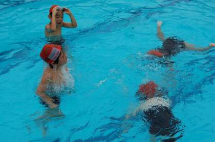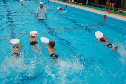 梅雨の晴れ間にプールに入ることが出来ました。水慣れの後,ねらい2浮く・もぐるあそびをしました。その後,ねらい3ですすむ水あそびです。2年生は「水」が大好きです。