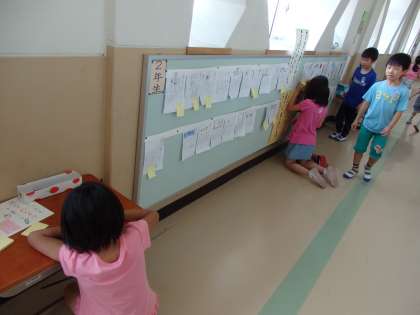 新たに,友だちのニュースを読んで,感想を書いて伝えるコーナーを設置しました。すると,さっそくたくさんの子どもたちが書いていました。
