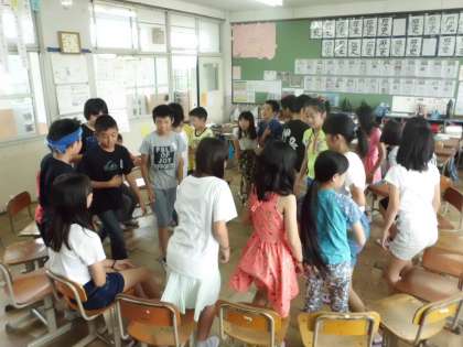 あいにくの雨だったため急遽「フルーツバスケット」をクラスみんなで行いました。