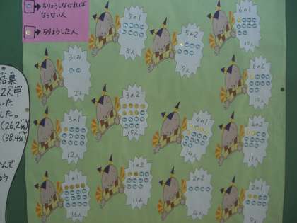 ほけん室前のけいじ板。