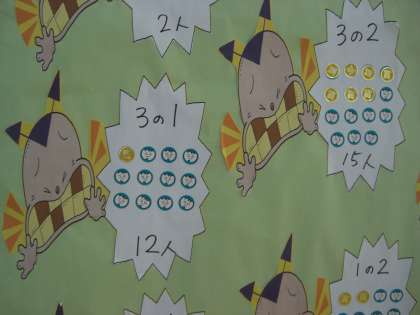 「ちりょうずみ」の黄色いシールがたくさんはってあります。