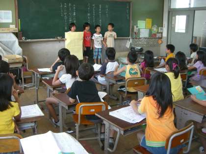みんながじゅん番に見られるようにと考えて、教室にけいじしました。