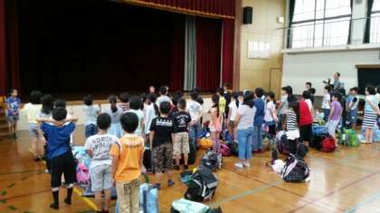 子どもたちが楽しみにしていたみさきの家での野外活動が今日から始まりました。出発式では,みんなでこの三日間のスローガンを確認しました。みさきの家では,野外炊事やオリエンテーリングなど楽しい活動がいっぱいです。いつもスローガンを意識し,仲間への思いやりの気持ちと感謝の気持ちを大切にしながら,充実した三日間にしてほしいと思います。