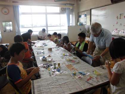 夏休みは,学習以外に 夏の工作をアドバイザーの方にお手伝いいただいて 毎年 子どもたちが楽しんで作成しています。