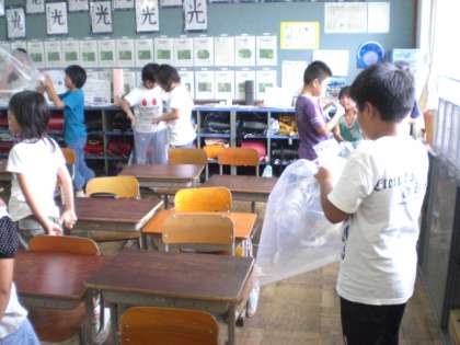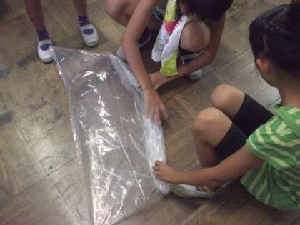 今日は,理科でビニール袋を使って学習をしました。「袋に閉じ込めた空気を手で押したり,その上に腰掛けたりして空気が圧し返す手ごたえを調べる。」ことがめあてです。