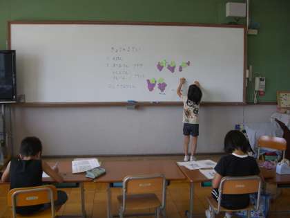 今日も朝から暑い一日。そんな中,子どもたちは元気に登校してきました。呉竹総合支援学校に通うAさんも一緒に,3組は3人で学習しました。